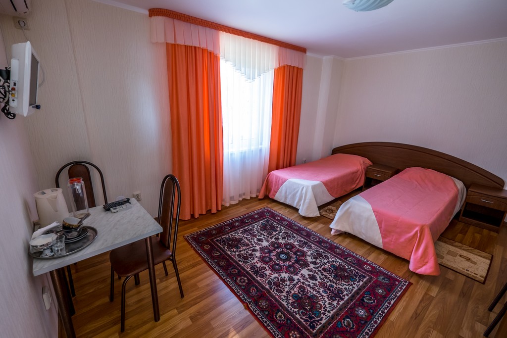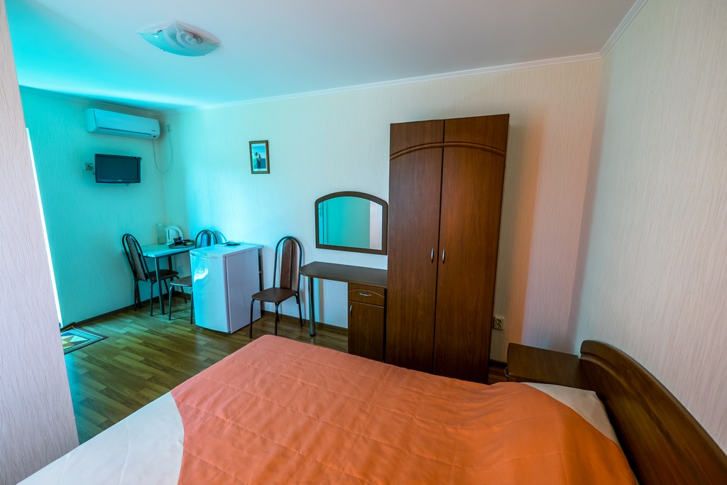 Удобства: cанузел + душ в номере, сплит-система, телевизор, холодильник, интернет, посуда, балкон (общий).